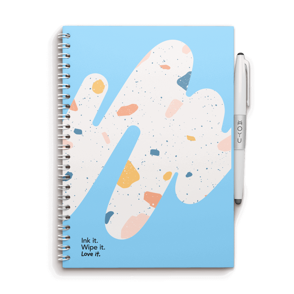 Ervaar uitwisbaar steenpapier in ons Rocky Ice notitieboek. Schrijf op water- en scheurbestendige pagina’s van 100% recyclebaar steenpapier.