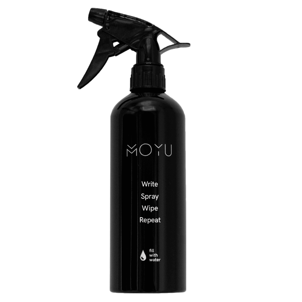 De handigste water sprayfles (500ml) voor MOYU’s uitwisbare Flipovers. Schrijven en uitwissen op steenpapier is nog nooit zo makkelijk geweest.De water sprayfles (500ml) voor MOYU’s uitwisbare Flipovers en grote oppervlaktes. Schrijven en uitwissen op steenpapier is nog nooit zo makkelijk geweest.