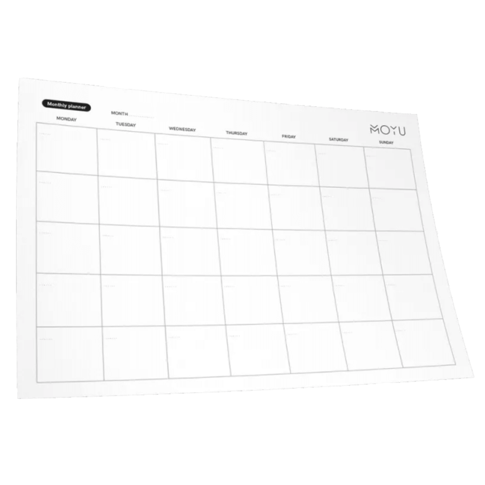 Een uitwisbare maandplanner (A4 formaat) om je maandplanning in één oogopslag overzichtelijk te maken. Makkelijk uit te wissen en her te gebruiken.Een uitwisbare maandplanner (A4 formaat) om je maandplanning in één oogopslag overzichtelijk te maken. Makkelijk uit te wissen en te herschrijven.